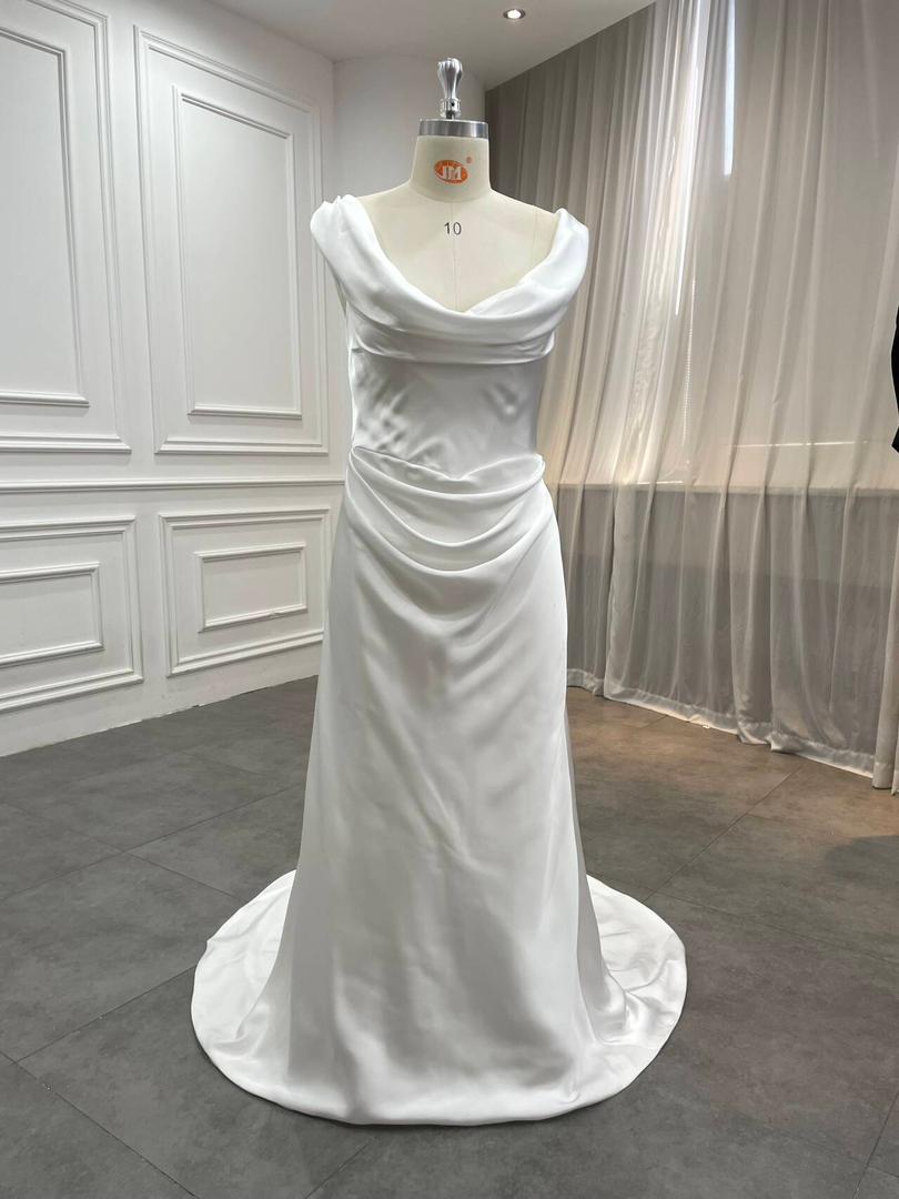 Gorgeous imported Satin sheath gown with structured boning bodice to allow for sleeves to drape off shoulder or on top.