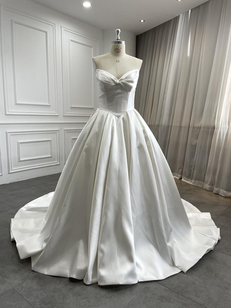 Experience timeless elegance with the Starr Bridal-Majestica gown. Crafted in luxurious Mikado satin, this ball gown features a flattering cat eye neckline and convenient pockets. Its classic silhouette creates a regal presence, perfect for making your special day truly unforgettable.