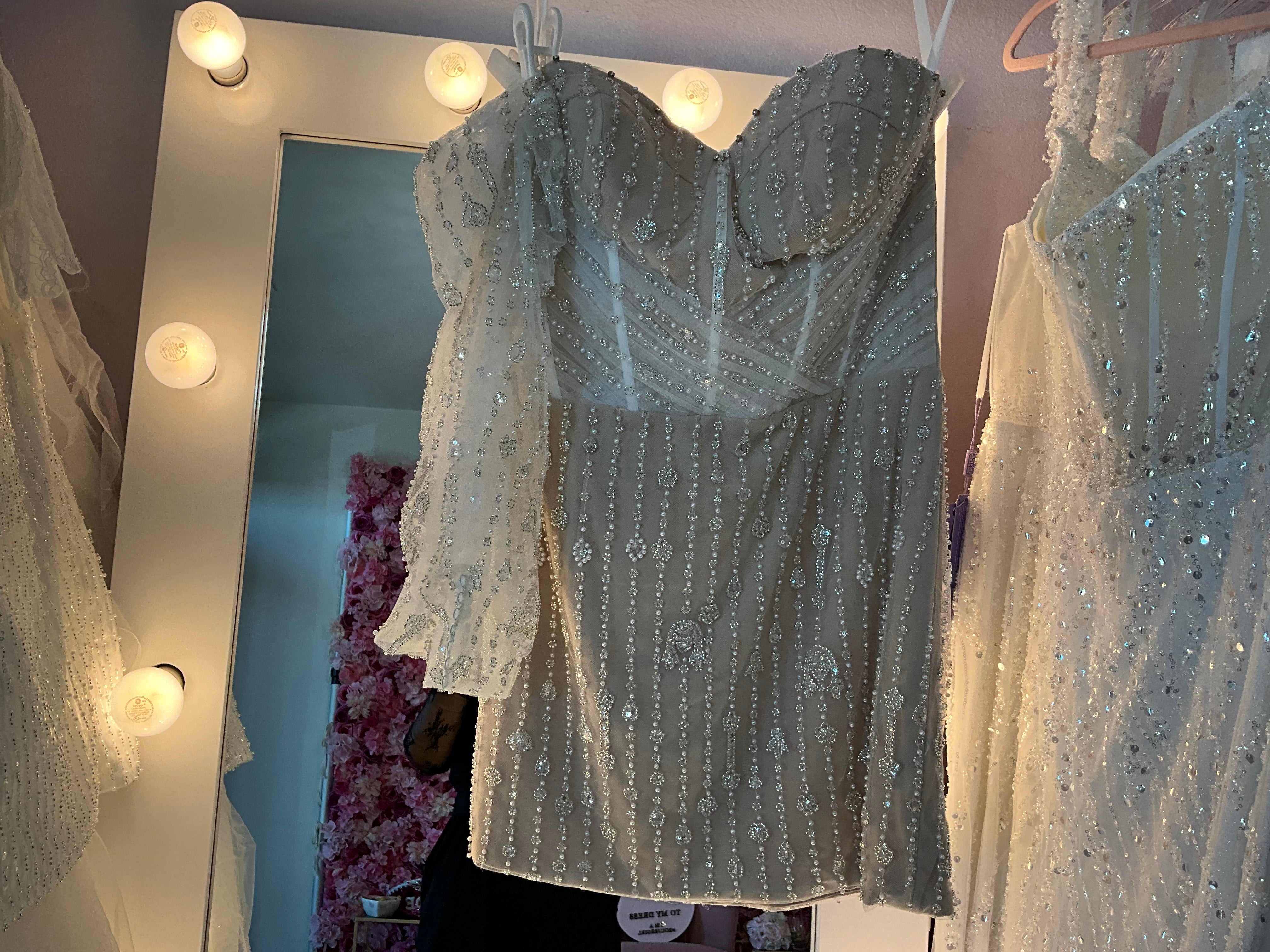 Blinged out mini dress with matching gloves
