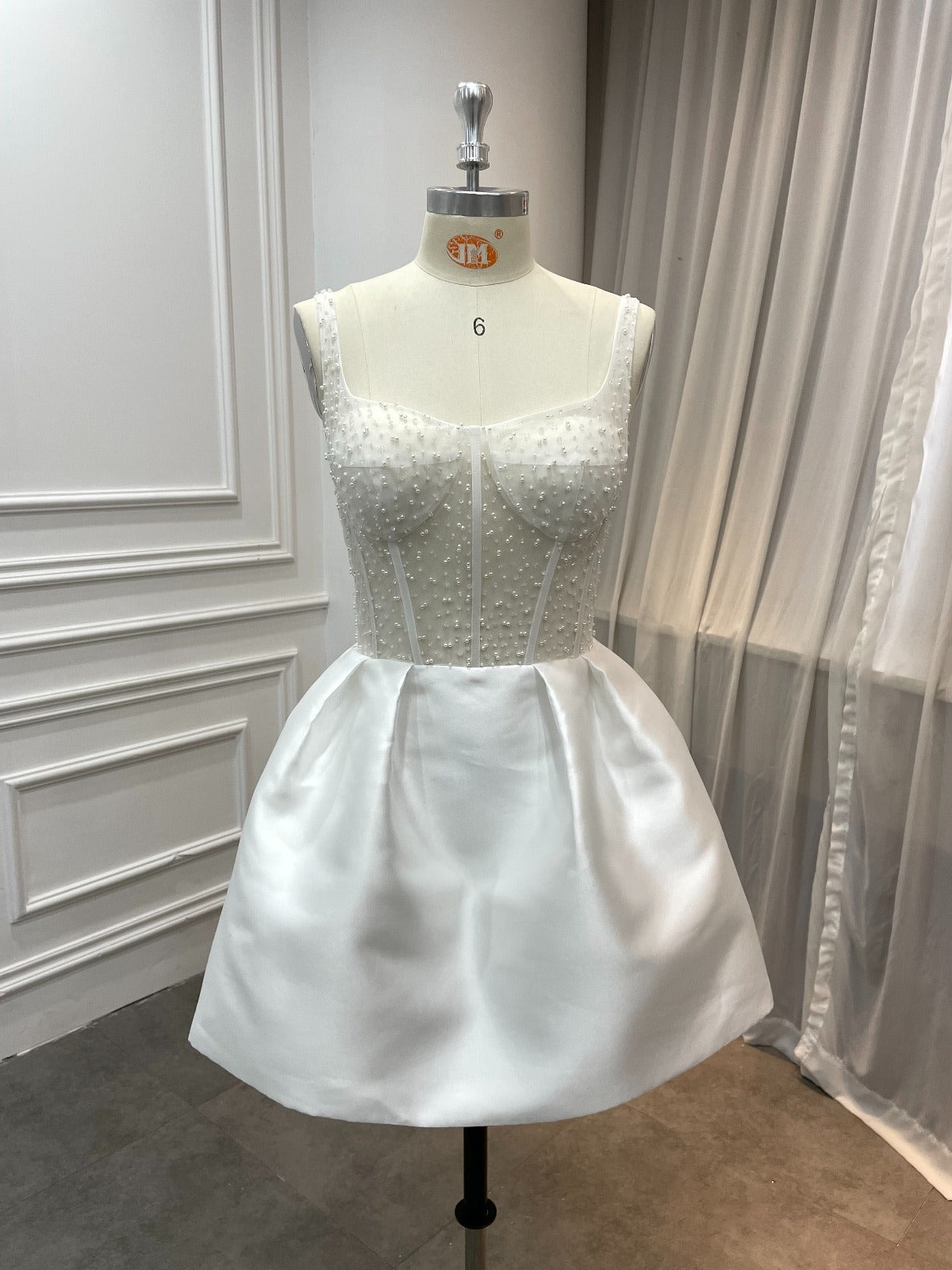 Mini dress with pearl accents . Perfect for any bridal occasion